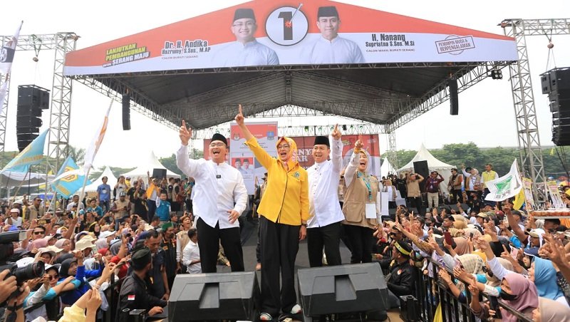 “Kekuasaan adalah milik Allah, kekuasaan adalah ujian. Ini adalah pesta demokrasi, pesta masyarakat menentukan pemimpin Kabupaten Serang hari ini dan masa depan. Mari memilih sesuai hati nurani,” kata Airin.