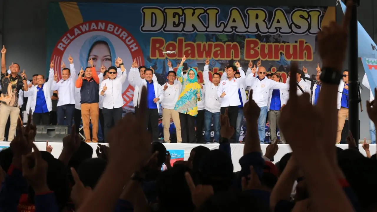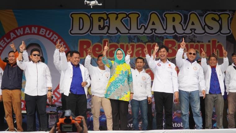 Deklarasi dipenuhi semangat kebersamaan itu, para para buruh meneriakkan yel-yel “Airin Gubernur Banten.” Bahkan, kehadiran Airin disambut dengan antusiasme tinggi oleh para buruh berasal dari berbagai sektor industri yang terhimpun dalam Konfederasi Serikat Pekerja Seluruh Indonesia (KSPSI).