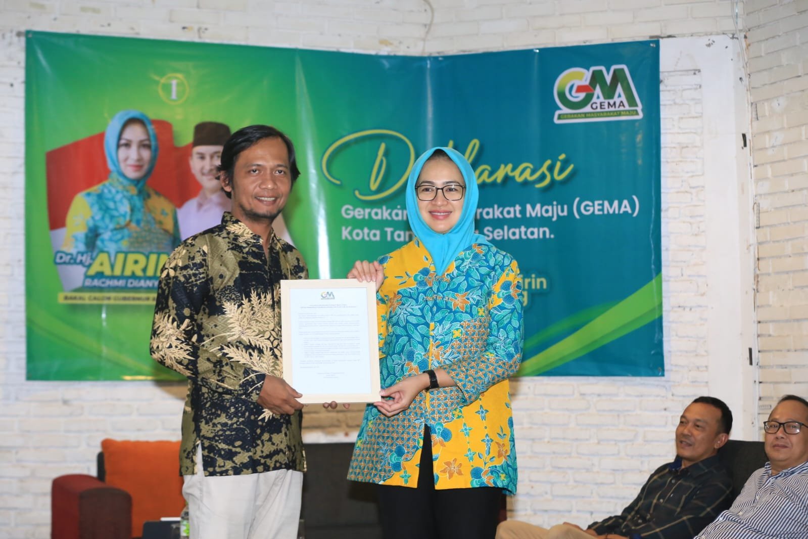 Para aktivis muda yang tergabung dalam Gerakan Masyarakat Maju (GEMA) Kota Tangerang Selatan (Tangsel) resmi mendeklarasikan dukungan kepada pasangan calon gubernur dan wakil gubernur Banten nomor urut 1, Airin Rachmi Diany dan Ade Sumardi, untuk Pilkada Banten 2024.